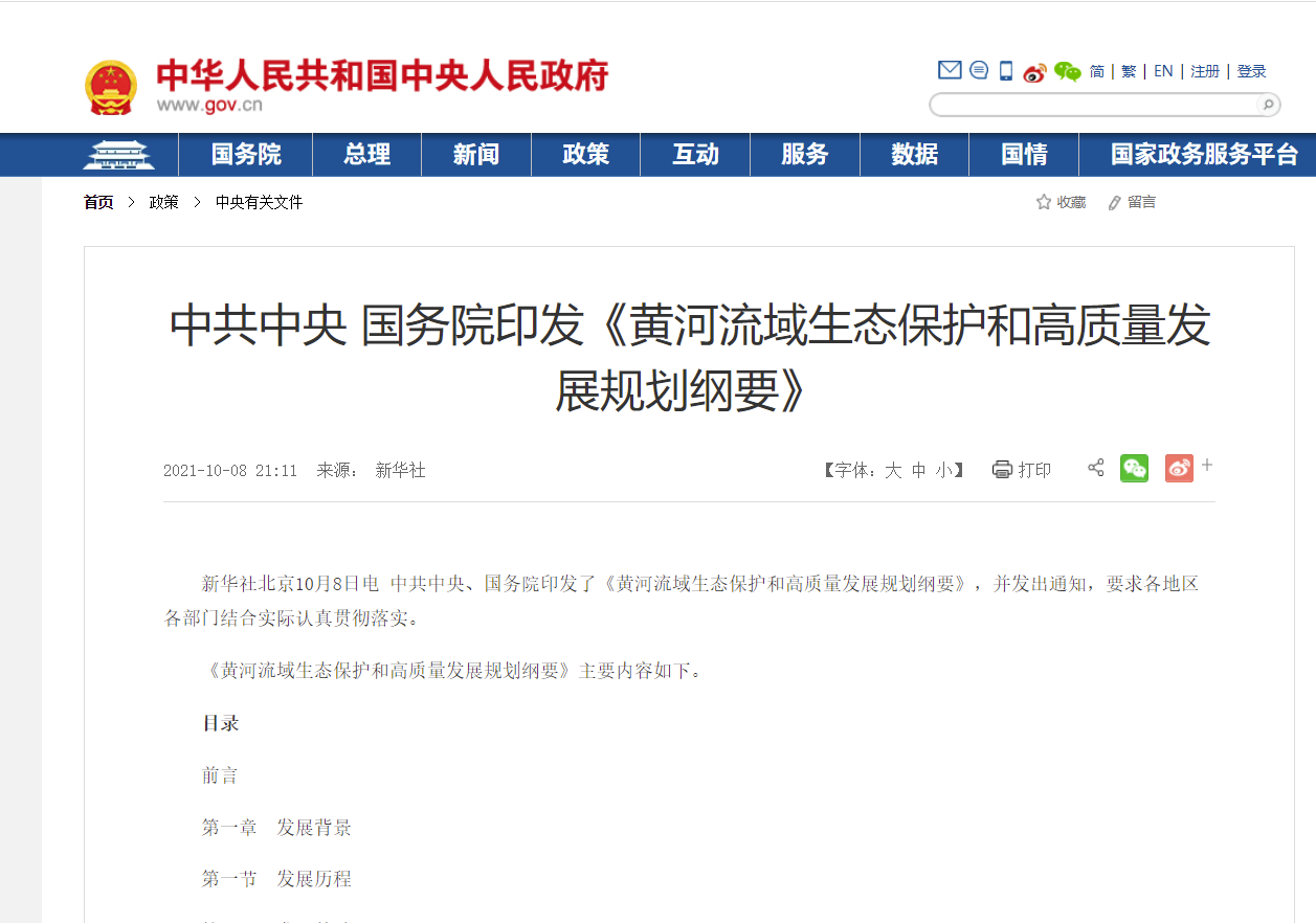 轉發中共中央 國務院印發《黃河流域生態保護和高質量發展規劃綱要》