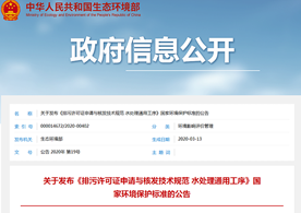 生態環境部關于發布《排污許可證申請與核發技術規范 水處理通用工序》國家環境保護標準的公告