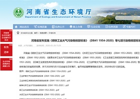 河南省《鋼鐵工業大氣污染物排放標準》(DB41 1954-2020)《水泥工業大氣污染物排放標準》(DB41 1953-2020)《鋁工業污染物排放標準》
