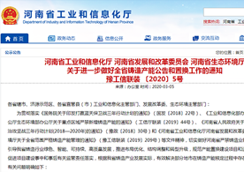 2020年3月5日,河南省工業和信息化廳、河南省發展和改革委員會、河南省生態環境廳聯合發布《關于進一步做好全省鑄造產能公告和置換工作的通知》