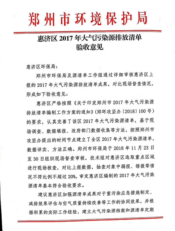 我司承接的“中原區(qū)、二七區(qū)、惠濟區(qū)2017年大氣污染源排放清單”順利通過驗收