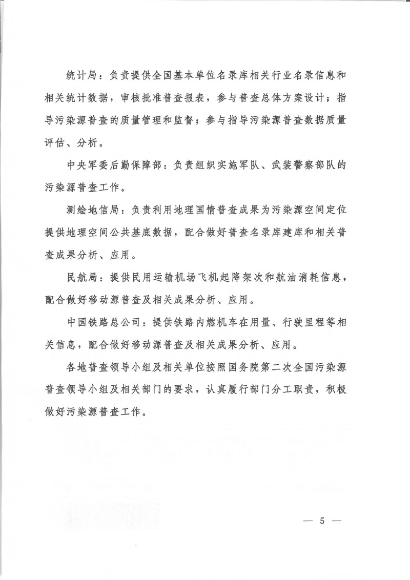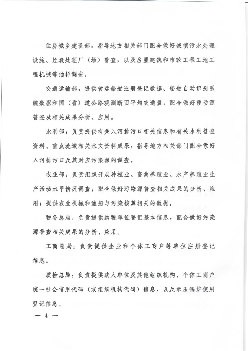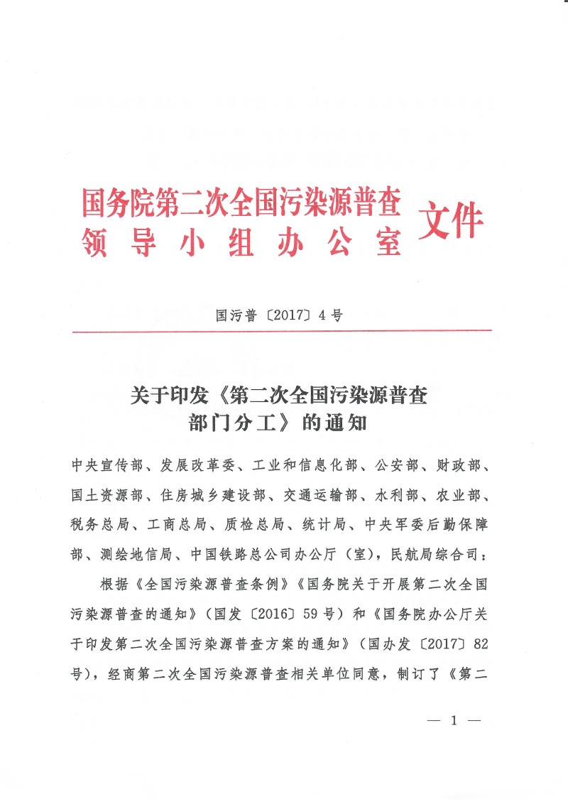 國污普【2017】4號關于印發《第二次全國污染源普查部門分工》的通知