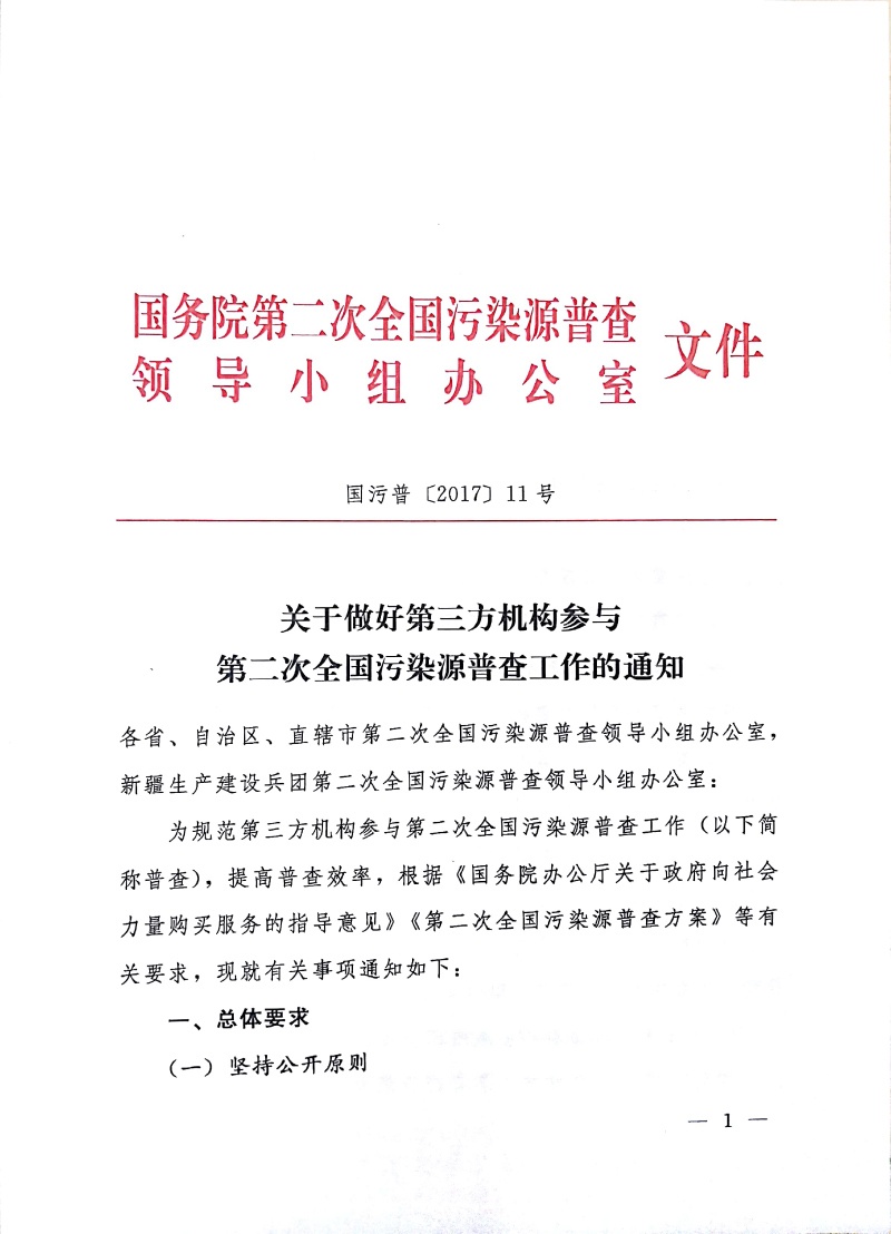 國污普【2017】11號關于做好第三方機構參與第二次全國污染源普查工作的通知