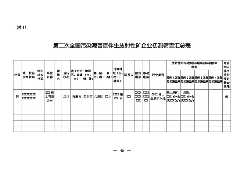 上一篇:國污普【2018】1號關(guān)于印發(fā)《第二次全國污染源普查伴生放射性礦普查檢測技術(shù)規(guī)定》的通知全文 下一篇:國污普【2018】15號關(guān)于印發(fā)第二次全國污染源普查制度的通知