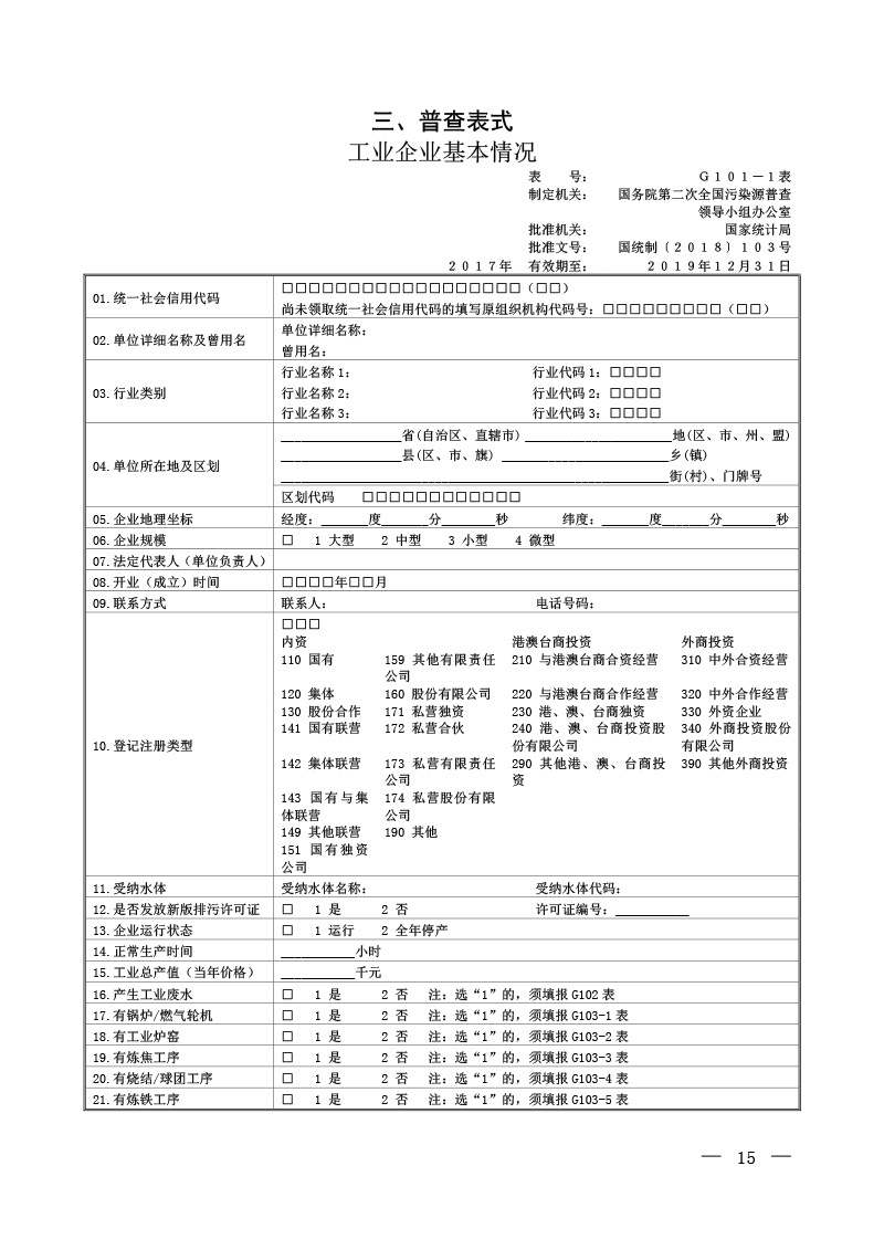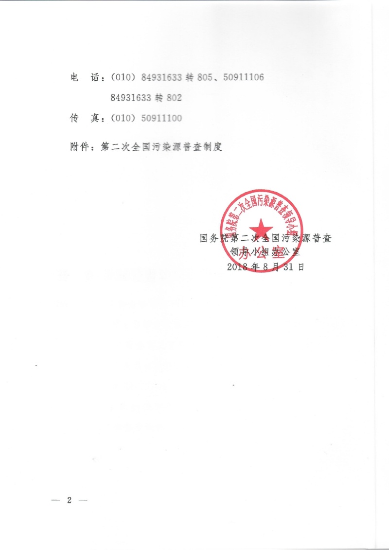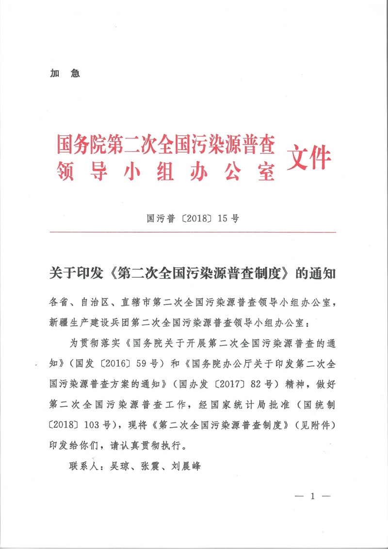國污普【2018】15號關于印發(fā)第二次全國污染源普查制度的通知