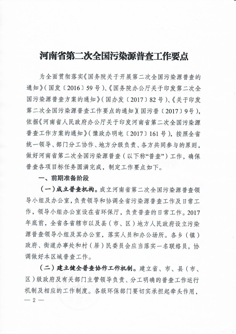 豫污普辦【2018】5號關(guān)于印發(fā)河南省第二次全國污染源普查工作要點的通知